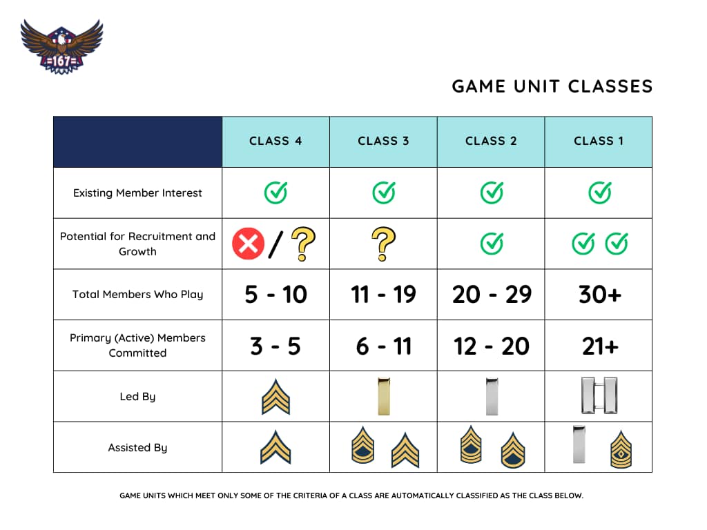 Non-Commissioned Officers (NCOs) serve as frontline and middle-level supervisors and leaders within =167=. They are primarily responsible for rule / policy enforcement, as well as guiding and training members. They can hold leadership positions within their respective games if required.
